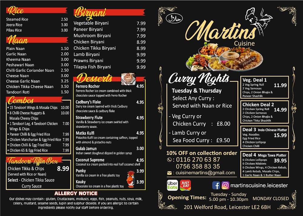 Located on Welford Road, Martins Cuisine is easily accessible and a local favorite for a reason. The restaurant's casual vibe invites families, friends, and anyone seeking a delicious meal to come and unwind. Not only does it offer dine-in options, but takeaways are also popular, especially on busy weekdays.